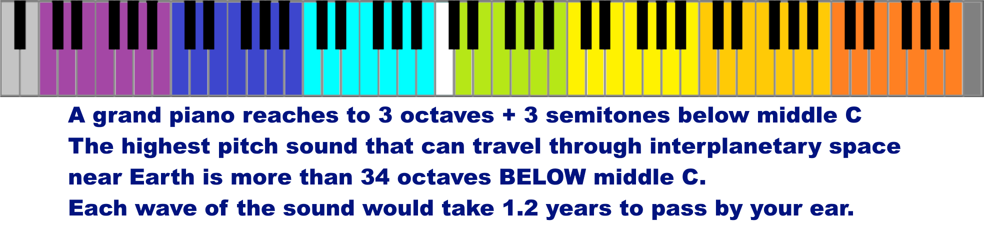 Each wave of the sound would take 1.2 years to pass by your ear.”Keyboard colouring from: